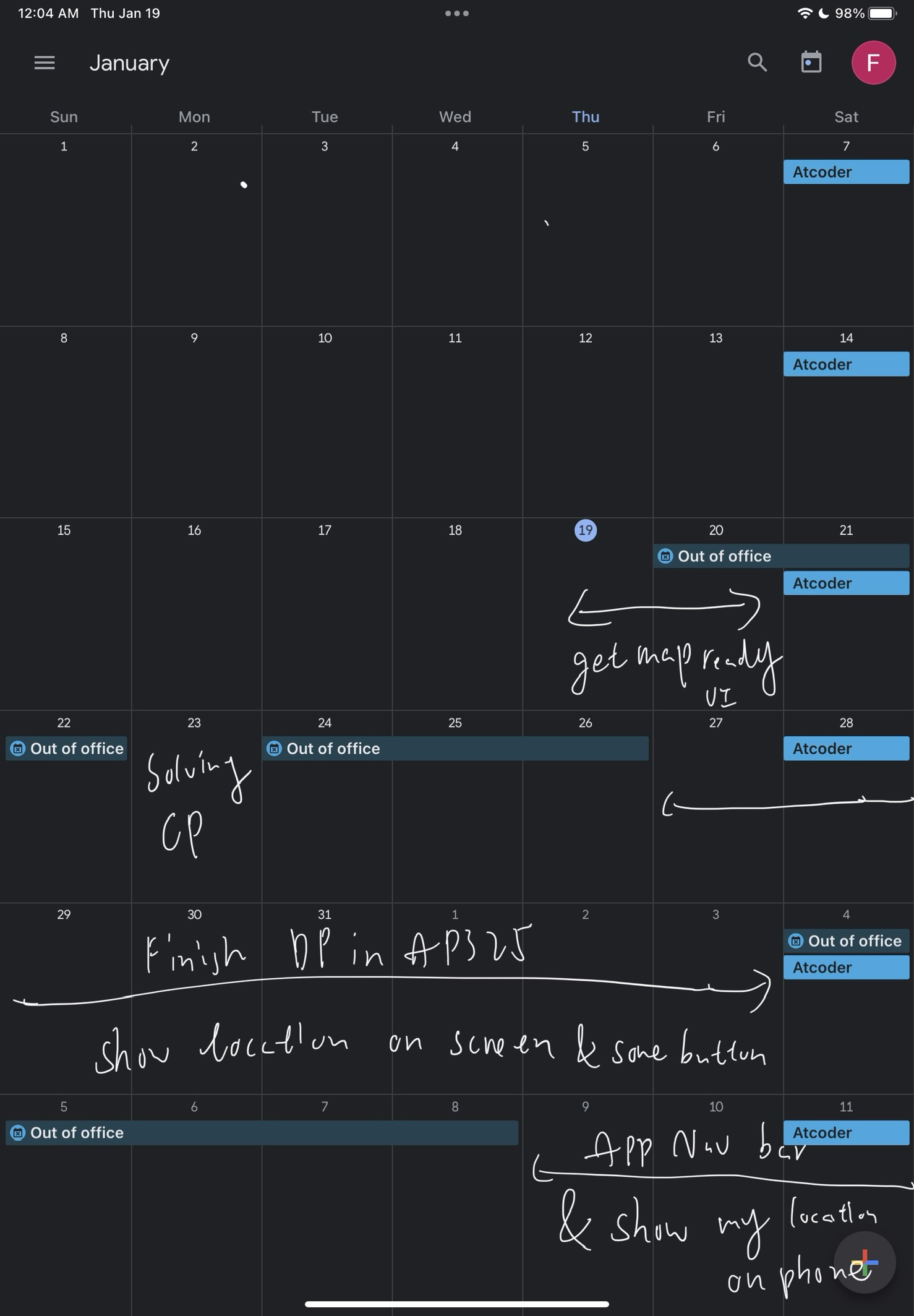寒假比我預先以為的短很多😵💫,所以感覺計畫要改變一下了,刷題感覺也刷不完qqq,太多事情ㄌ,太高估自己的效率了,先試試行事曆安排的。